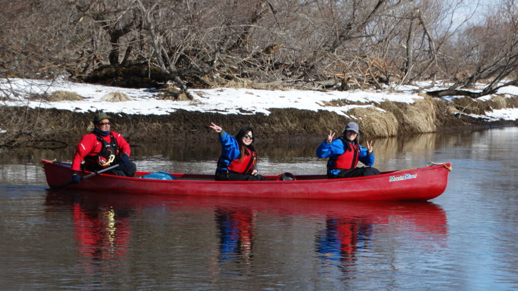 釧路川本流~アレキナイ川~塘路湖までの約6キロのコースです。ドライスーツを着用します。