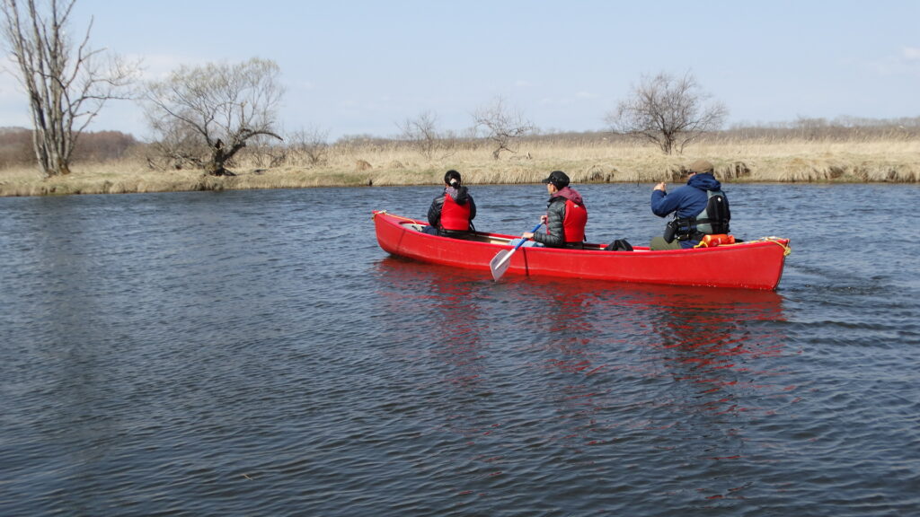 釧路川本流~アレキナイ川~塘路湖までの約6キロのコースです。ドライスーツを着用します。